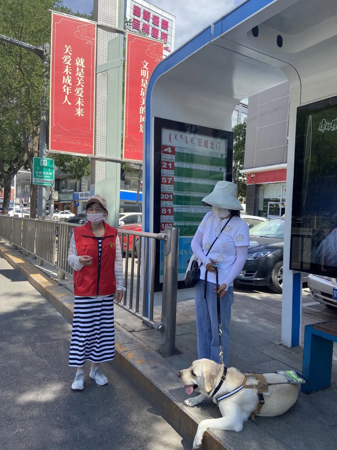 第三站活动是视障残疾人李凤玲乘坐公交车。在导盲犬A梦的带领和市残联志愿者的帮助下,李凤玲顺利从旧城北门搭乘4路公交来到呼和浩特市图书馆。在呼市残联和呼市公交公司的推动下,当前,市内四区持有本市残疾人证的残疾人都可以办理免费乘车IC卡,此举走在全国前列,国内大多地区只针对盲人享有此优惠。