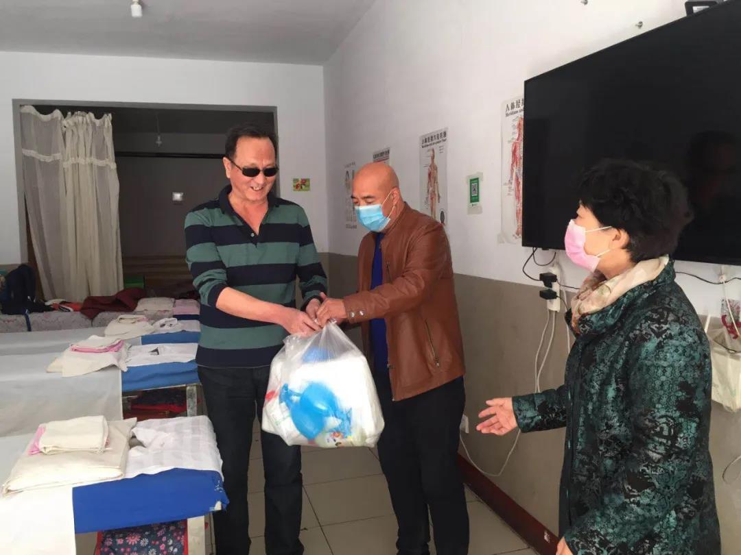 当得知盲人按摩店消毒防护物资缺乏,而盲人因行动不便,难以购买的困难时,市残联领导第一时间筹措资金,紧急组织购买了一批防护物资,并从3月22日开始,陆续发放到了按摩机构盲人手中。