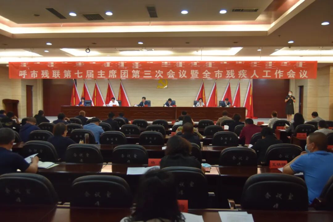 5月15日上午,呼市残联第七届主席团第三次会议暨全市残疾人工作会议召开,自治区残联副理事长贾鹏出席会议。会议由市政府办公室调研员赵明主持。参加会议的有市残联第七届主席团委员,市残疾人各专门协会主席,各旗县区残联理事长、副理事长、办公室主任,残疾儿童康复机构、残疾人辅助性就业机构负责人,市残联机关各部室、中心全体干部共90多人。