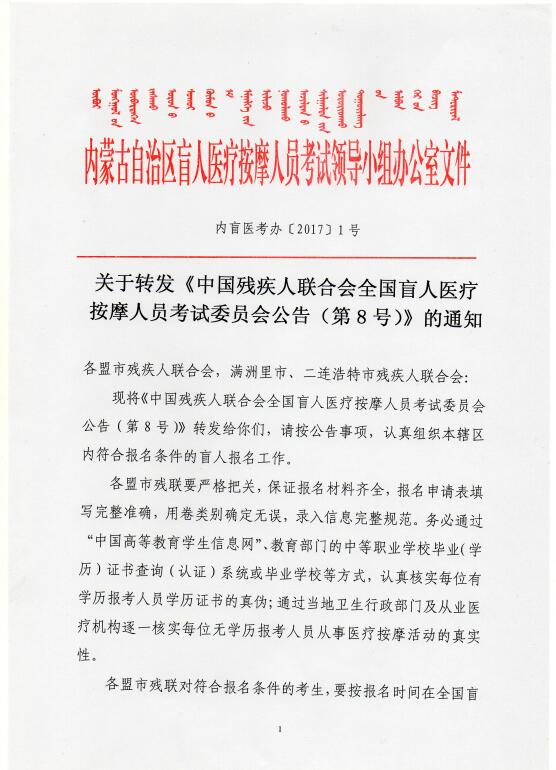内盲医考办〔2017〕1号