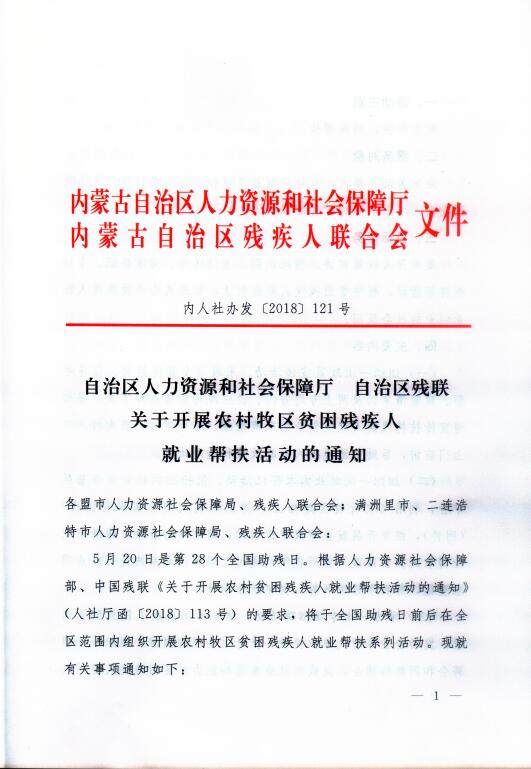 关于开展农村牧区贫困残疾人就业帮扶活动的通知